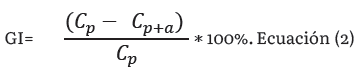 Donde CP es el crecimiento radial del patógeno (testigo), en centímetros, a las 96 horas, y Cp+a es el crecimiento radial del patógeno bajo la acción del antagonista a las 96 horas, expresado en centímetros.