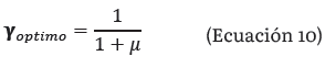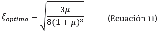 La razón de amortiguamiento óptimo se encuentra relacionada por