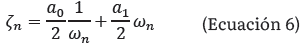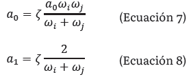 Los coeficientes α0 y α 1 se determinan a partir de fracciones de amortiguamiento, las cuales son calculadas con las siguientes expresiones: