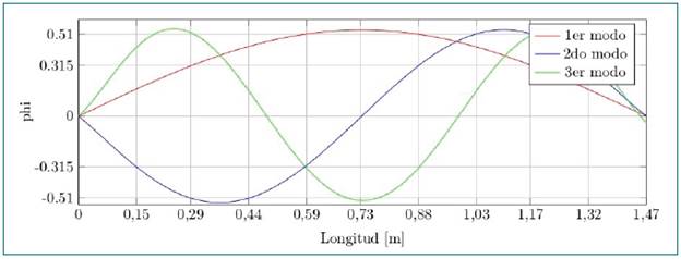 Los vectores propios son usados para definir los modos de vibración de la estructura. Estos son directamente proporcionales a la cantidad de grados de libertad que posee el elemento. A continuación, se ilustran los primeros modos de vibración de la viga simplemente apoyada: