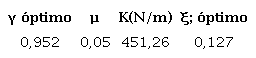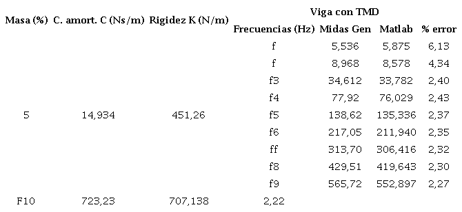 La tabla 2 presenta los valores óptimos de la configuración para una viga con un TMD.