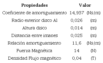 De acuerdo con la configuración propuesta [ 9], los parámetros usados como base para el diseño del amortiguador son: