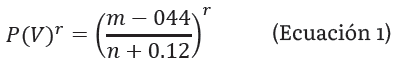 En la ecuación ( 1), m define el valor que ocupa cada velocidad en el posicionamiento, n es el número último del posicionamiento que define al total de valores y r es el total de excesos por encima del umbral entre el total de años por analizar (20 años).