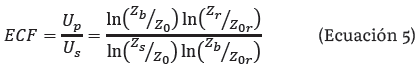 Donde zb es la altura de mezcla, 60 metros para alturas máximas de elementos de rugosidad entre 20 y 30 metros [ 12], zs altura del anemómetro, zr altura de referencia, 10 metros, z 0r longitud de rugosidad de referencia igual a 3 cm para estaciones en tierra [ 12] y z 0 longitud de rugosidad.