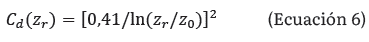 Donde Cd es el coeficiente de arrastre, z 0 es la longitud de rugosidad y z res la altura de referencia (10 m).