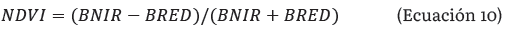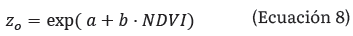 El segundo método empleado, NDVI, se desarrolla con el empleo de la teledetección. Moran [ 29] planteó ( ecuación 8) la relación que existe entre la longitud de rugosidad y el NDVI: