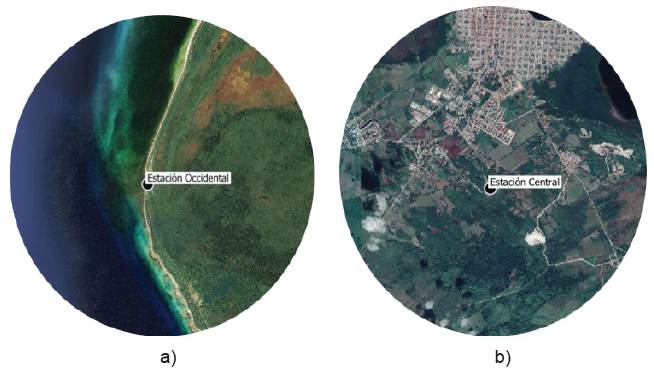 En esta investigación se determinaron los factores de corrección por exposición en dos estaciones cubanas, a partir de estimar las longitudes de rugosidad correspondientes al terreno circundante por el método de las Clasificaciones de Davenport [ 22] y el método del Índice de Vegetación de Diferencia Normalizada (NDVI). Para el desarrollo de ambos métodos se empleó la teledetección con las imágenes del satélite LandSat 8 y los programas QGIS y Multispec.