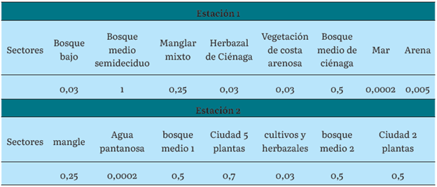 A partir del reconocimiento del tipo de terreno circundante ( figura 2), explicado anteriormente, se asignaron valores de altura a los distintos puntos de control, con el apoyo de investigaciones publicadas sobre la vegetación de Cuba [ 34] en estas zonas y de imágenes locales. Los valores de NDVise obtuvieron con la asistencia del programa QGIS 3.6 a partir del procesamiento de las bandas roja (BRED) e infrarrojo cercano (BNIR) mediante la ecuación ( 10):