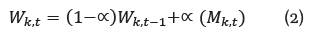 Additionally, the image frames are segmented, so that initially the separation of the moving objects from the background is achieved. For this, a Gaussian Mixture Modeling is applied by means of the BackgroundSubtractorMOG2 algorithm, which generates adaptability to the objects that were static and start to move, so that they are reincorporated to the image [22]. Equation 2 presents the model that represents the Gaussian Mixture Modeling for image background segmentation, in which represents the learning ratio, and (Mk t)works in binary mode, so that it takes a value of 1 and 0 in case of finding or not finding matches respectively.