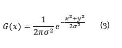 The blur filter is applied with the objective of eliminating redundancies in the image, generating the loss of minor details and a smoothing effect [23]. In addition, this type of filtering does not perform two-dimensional convolutions, but generates two sweeps in one dimension, one for the X-axis and one for the Y-axis. Equation 3 shows the mathematical basis of a Gaussian blurring or smoothing filter, in which X and Y represent the horizontal and vertical offset respectively, and a indicates the standard deviation of the Gaussian distribution. Generally, variant filter sizes between 3x3 and 7x7 kernels are employed in human detection processes. In the present case, a Gaussian mask was used for blur filtering of size 7x7 taking into account that the objective is to prepare the image for processing to a point where each of the objects present in the image frame are distinguishable, thus reducing the computational requirements.