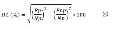 The measurement of the efficiency of the computational tool is performed in two stages. First, the efficiency of the image processing for the detection of people is determined, which ends up influencing the occupancy estimation. Equation 5 shows how the detection accuracy (da) is determined, in which Pp, indicates the number of people in the area that the system was able to detect, Pnp, indicates the people that were not detected in the area, and Np, indicates the actual number of people in the area.
