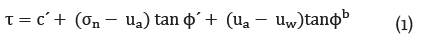 La envolvente de falla extendida para los suelos parcialmente saturadas toma la forma matemática mostrada en la ecuación 1 [2], [10], [11]: