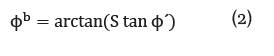 Según [11], los parámetros de resistencia para los suelos parcialmente saturados se ven afectados por la influencia de la succión, y estos se pueden obtener a partir de los parámetros de resistencia del suelo saturado [1]. Igualmente, plantean que la relación existente entre y viene dada en función del parámetro de Bishop. Aplicando el criterio considerado por [1] se obtiene el ángulo de succión mediante la ecuación 2.