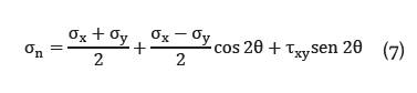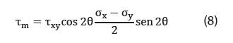 La fuerza normal resultante y la fuerza cortante movilizada se muestran en las ecuaciones 7 y 8. Ambas dependen de las fuerzas normales (σx; σy) y cortante (τxy) en la base de cada dovela, así como del ángulo positivo formado en el momento de aplicación de la carga (θ).