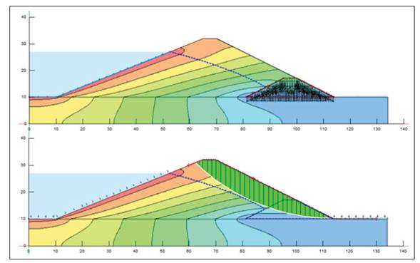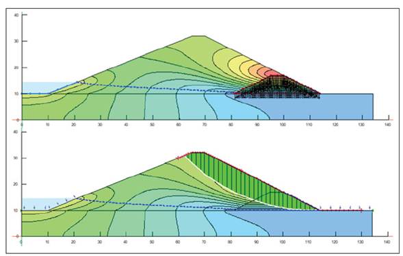 El GeoStudio 2018 permite implementar varios tipos de elementos, dependiendo de la geometría del modelo en cuestión. Los resultados para la presa de tierra analizada se muestran en la figura 5.