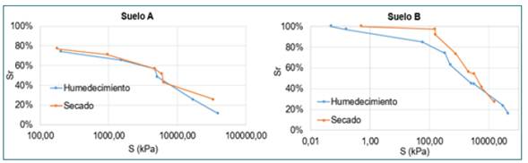 Los resultados de la curva característica correspondientes a los suelos empleados se muestran en la figura 2.