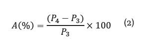 El procedimiento consistió en aplicar la película de pintura sobre una superficie que le permitiera independizarla del sustrato utilizado. Luego, se dejó secar por 24 horas en una cámara con recirculación de aire a 40°c. Se obtuvo así el peso P3 de la película de pintura y se sumergió la muestra en un recipiente con agua destilada por 24 horas. Se retiró, se secó cuidadosamente con un papel de filtro y se pesó para obtener P4 del polímero con agua absorbida. El cálculo de la absorción (A) se realizó según la Ecuación 2 [17].