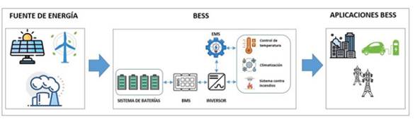 Las partes principales de un sistema BESS se representan en la Figura 1 y se definen a continuación: