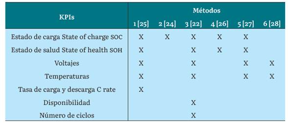 La Tabla 1 presenta los KPIs para la evaluación de la condición de sistemas BESS sugeridos en las referencias estudiadas.