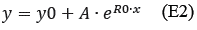 Donde x es el tiempo en milisegundos, yo representa la característica de la respuesta estacionaria, y los parámetros A y R0 se asocian a la respuesta transitoria.
