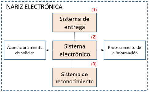- Sistema de reconocimiento de patrones, en el cual los datos obtenidos por el sistema electrónico son finalmente analizados con técnicas de reconocimiento de patrones.