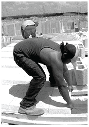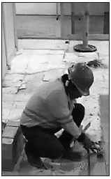En cuanto a la tarea de colocación de bloques en las primeras filas del muro, se puede alternar la posición observada -con inclinación del tronco- con otra en la que el sujeto trabaje brevemente de rodillas y utilice rodilleras para amortiguar el impacto en las articulaciones; de esta forma, se disminuiría el tiempo de exposición al riesgo de sobrecargar las articulaciones del tronco. Se hace la observación de que es importante limitar el tiempo de trabajo de rodillas para evitar la bursitis.