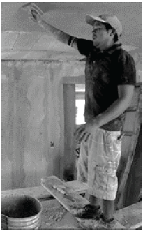 Se evaluaron las actividades correspondientes a colocación de bloques en muro en filas superiores y aplicación de acabado en plafón (Figuras 7 y 8). Como resultado de la aplicación del método Check List OCRA se pudo observar que en ambas actividades los sujetos trabajaban casi sin tomar descansos, por lo que el factor de fuerza (FFZ) se hizo crítico [1], ya que este depende del nivel de esfuerzo aplicado. Por esta misma razón, el factor de postura (FP) también se vio afectado, toda vez que causó que los trabajadores repitieran una mayor cantidad de movimientos durante la jornada de trabajo, lo cual podría ocasionar mayor desgaste en las articulaciones afectadas (hombros, codos y muñecas) [19].