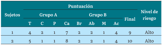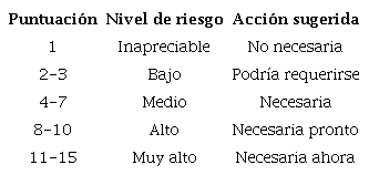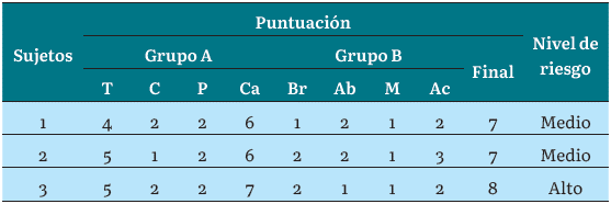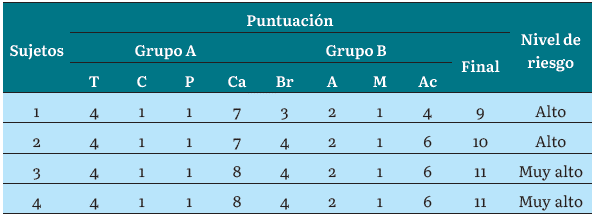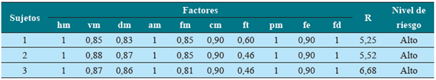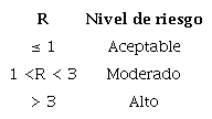 De acuerdo con R, se asigna un nivel de riesgo, cuya escala se muestra en la Tabla 3.