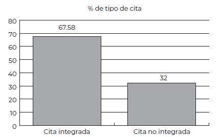 En los datos, se confirma que la relación de selecciones discursivas para la construcción de la transtextualidad en los marcos teóricos está orientada hacia una preferencia por la integración de los autores al discurso y la transcripción literal de sus enunciados, en una proporción del 43 %, en un extremo, y un menor uso de CNI y DI, con un 15 %, en el otro. Confirmaríamos, de este modo, la tendencia a marcar el compromiso con la fuente por las razones ya señaladas y, además, la escasa variedad de recursos enunciativos y escriturales, como la síntesis, el parafraseo y la construcción de la voz propia.