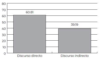 Uso del DD y DI. Con respecto a la recurrencia al DD o al DI, según se expone en la figura 2, del total de las citas codificadas como integradas y no integradas, el 60,81 % fueron reproducidas de manera literal, frente a un 39,19 %, que fueron parafraseadas. Estos resultados evidencian que los estudiantes prefieren el estilo directo, de modo que, cuando apelan a las voces de otros autores, deciden no interferir sobre los enunciados y transcribirlos directamente (figura 2).
