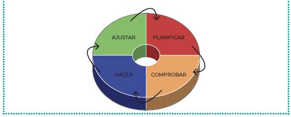 Para hacerlo, se propuso a los directivos de cada institución implementar el modelo evaluativo según el ciclo de Deming. Se conoce con este nombre el sistema de evaluación de calidad basado en necesidades de clientes y la necesidad de establecer un ciclo de mejoramiento continuo como condición necesaria para conseguir éxito en la gestión y calidad integral a través de toda la organización (Thomas y Rosas, 1996).