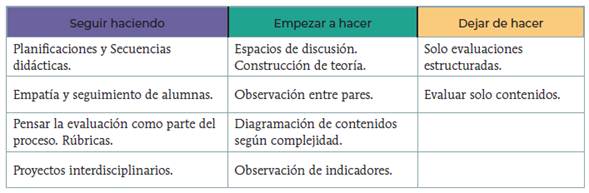 En este caso, se comprueba que "el análisis reflexivo no surge espontáneamente, (...) requiere de dispositivos que contribuyan al diálogo, en interacción con otros, que sean sistemáticos y continuos" (Anijovich y Capelletti, 2018, p. 77).