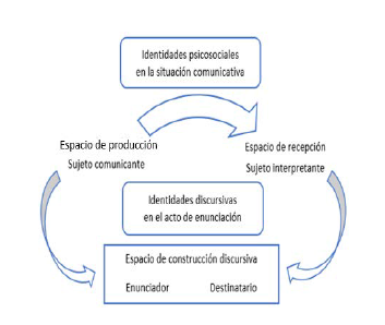 Dentro de este contrato comunicativo, tal como lo explica Charaudeau (2009), los actores sociales en la situación comunicativa cumplen con papeles de producción y recepción regulados por normas psicosociales; asimismo, a través del acto de enunciación, en el producto terminado se configuran el enunciador y el destinatario. La Figura 1 muestra la participación de estos sujetos en el acto del lenguaje.