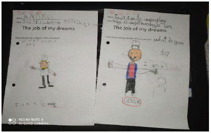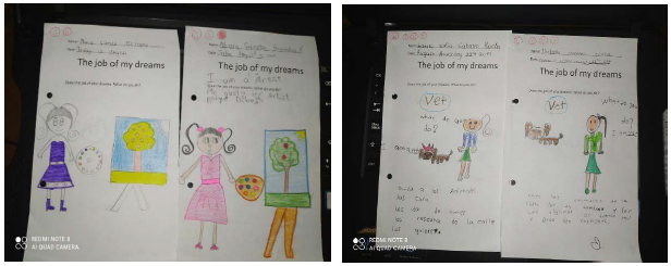 We also could mark a lack of innovation and creativity in the children's productions. This led to low attention spans and disengagement convincing us of the need to introduce tasks that required more than a reproduction of language patterns (Figures 2 and 3) but demanded creativity.