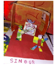 Transformational Thinking. Task 7 main objective was for second graders to re-create the place they want to work in when they grow up with different materials. One child imagined a stage in 3D (Figure 10) that altered the rule of an otherwise 2D-intended activity. Therefore, as Reem et al. (2019) suggested, art-related activities played an important role in freeing up the imagination and unlocking the potential for more creative expression. Nevertheless, for future applications, learners would transform language creatively, breaking some rules to create new ones, diverse and engaging learning