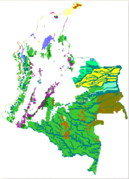 El territorio de lo que es hoy Colombia estaba cubierto, antes de intervenciones humanas significativas, por un conjunto variado de bosques tropicales de diversos tipos, basales y de montaña, húmedos y secos, además de una zona de amplias sabanas en la Orinoquia, páramos en las altas montañas y unas pocas áreas semidesérticas. La transformación que hubieran podido sufrir estos ecosistemas por intervenciones humanas después del poblamiento, hace unos 20.000 años, no se conoce a cabalidad aunque cabe suponer un efecto amplio y difuso en la mayoría de ellos. En cualquier caso, gran parte de los ecosistemas que habían sido intervenidos desde tiempos precolombinos por las poblaciones originarias, se recuperaron luego del colapso demográfico generado por el descubrimiento y la conquista. No obstante, desde el punto de vista ecológico lo significativo es que mantenían o habían recuperado una elevada capacidad de protección del suelo contra la erosión, que no obstante debía ser elevada dado el intenso régimen de lluvias y las fuertes pendientes que caracterizan a gran parte del territorio, en especial en la región andina. Esto explica que el río haya sido históricamente un río de poca profundidad en algunos tramos y de mucho torrencial.