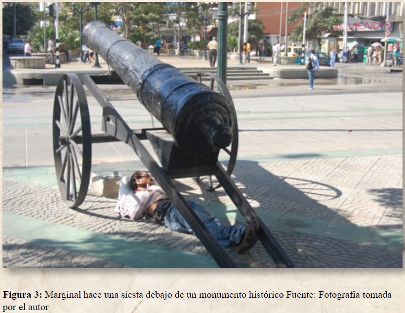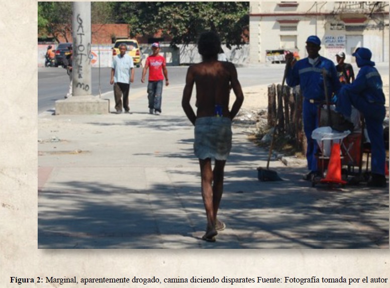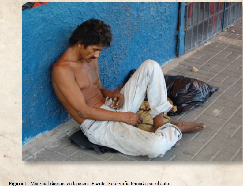Ballesteros & Martínez (2005:111) investigan sobre la población desplazada en Colombia, personas sometidas a condiciones de marginalidad. Estas autoras señalan que actividades como el reciclaje, la búsqueda de alimentos sin valor comercial (en graneros, plazas de mercado) y la mendicidad, se han convertido en opciones para la supervivencia de estas personas. En este mismo sentido, se observa que el centro de Barranquilla se convierte en una plataforma de orden socioeconómico donde diversas personas logran su sustento informalmente. En otras palabras, el centro es un espacio propicio donde se generan las condiciones para que las personas más marginadas de la sociedad (desplazados, muy pobres, indigentes, drogadictos) busquen su manutención.