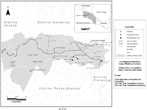 El estudio de caso se establece en una comunidad del norte costarricense, llamada La Fortuna. Tal sitio es un distrito perteneciente al cantón de San Carlos y a su vez adscrito a la provincia de Alajuela (figura 1); un espacio que ha sido poco investigado bajo la perspectiva que acá se plantea, es decir, respecto de la trayectoria histórica.
