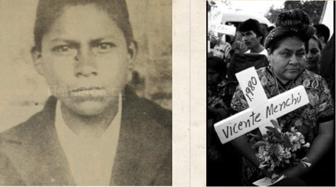 La Premio Nobel de la Paz de 1992 Rigoberta Menchú Tum es una indígena maya k'iche' nacida en Guatemala. Está casada y tiene un hijo. Su padre Vicente Menchú, -activista por el derecho de los indígenas a la tierra-, murió en la quema de la Embajada de España. Su madre Juana Tum, fue secuestrada y desaparecida; su hermano Víctor fue asesinado por el Ejército. Dos de sus hermanas fueron guerrilleras y se desmovilizaron.