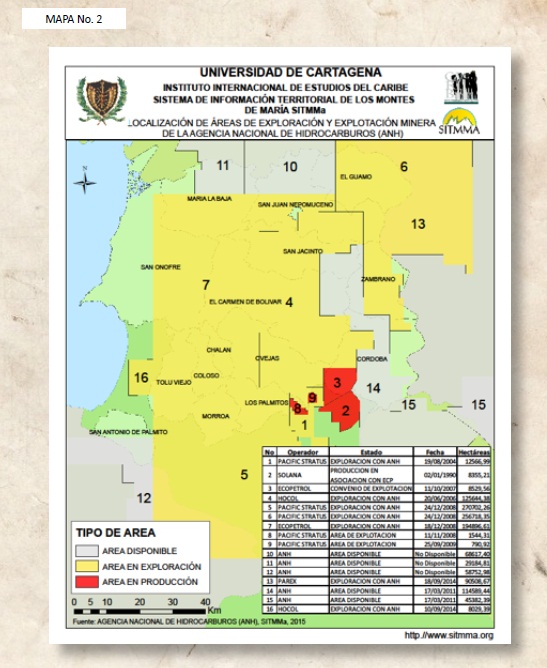 Agencia Nacional De Hidrocarburos (ANH). Reportes sobre exploración y explotación de hidrocarburos en la zona de Montes de María. Documento en formato Shapefile. 2013.