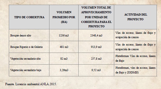 Asimismo la tabla 3, resume las acciones de intervención en construcción/mejoramiento de vías para el acceso a las zonas de exploración, la ubicación de áreas para disposición de materiales de excavación y el aprovechamiento forestal (bosques), durante la ejecución del proyecto.