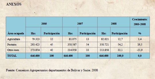 Instituto Geográfico Agustín Codazzi. Uso del Suelo en Montes de María, citado por María Aguilera. Montes de María: Una subregión de economía campesina y empresarial. En: Documento de Trabajo sobre Economía Regional. Banco de la República 2013.