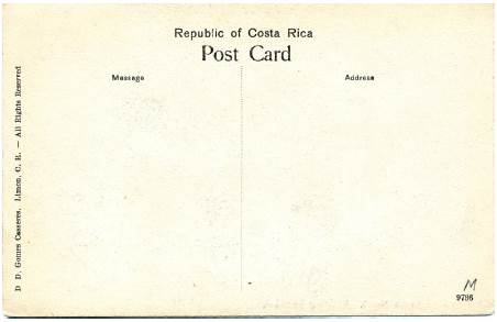 Como se aprecia en el título de la propia postal, se trata de "Banana Series N° 1. Planting Bananas" (figura 2). Los datos de la parte posterior de esa tarjeta me permitieron tener una noción más clara de las postales, tanto de la N° 1 como de la N° 12. El ejemplar con el que se cuenta no fue enviado a lugar alguno, ni tiene un texto que haya sido escrito por algún interesado en mandar un recuerdo. No obstante, sí posee datos que fueron colocados durante el proceso de edición, y que deben tenerse en cuenta al entrar en contacto con la imagen. La tarjeta informa que se trata de una toma capturada en la "Republic of Costa Rica", señalando -lo que resulta ser obvio- que es una "Post Card", así como datos del editor, al consignarse lo siguiente: "D D, Gomes Casseres. Limon, C. R. -All Rights Reserved" (figura 3).