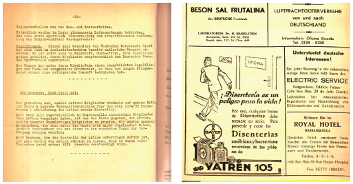 Volviendo al caso de Barranquilla y el grupo de alemanes que se encontraban residiendo en la población caribeña, estos también tuvieron la iniciativa de crear un órgano de difusión, al que llamaron "Boletín de noticias de interés de la comunidad alemana". No se conoce una fecha exacta del momento en que empezó a circular esta publicación; los primeros números encontrados datan de comienzos del segundo semestre 19351, y a través de ellos se pueden apreciar las características de una publicación cuyo fin principal, a grandes rasgos, era mantener informada a la comunidad de alemanes en Barranquilla de los asuntos propios de dicho colectivo, de los de su país de origen y del ámbito internacional.