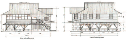 La jerarquización sociolaboral de la bananera es asimismo apreciable en los diseños, que, como los barrios o zonas, presentan tipologías de marcadas diferencias: casas tipo "H" para los altos cargos; tipo "E" para los mandadores (figura 10); tipo "F" para los timekeepers; tipo "K" para los foreman; baches para los trabajadores solteros; casas unifamiliares; casas bifamiliares de dos plantas; y two room (casas de dos plantas divididas en el eje central) (Villalobos, 2006, p. 18).