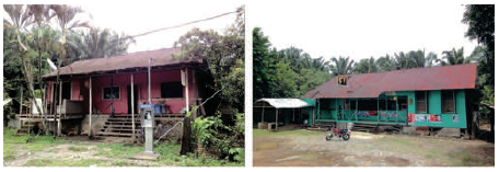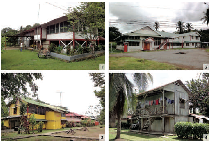 Las primeras casas de las fincas de Palmar Sur fueron, con excepciones, edificios de dos plantas con pavimentos de hormigón y cubiertas de planchas de hierro galvanizado. Se construyeron con pino tea y negro, más resistentes a la humedad. La madera llegó desde el desarticulado enclave hondureño de Puerto Castilla (Zamora, 2012, p. 19).