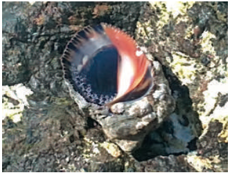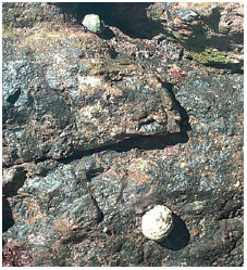 La figura 2 muestra el hábitat de los caracoles, donde aún hoy se observan adheridos a las rocas en la costa del Pacífico costarricense.