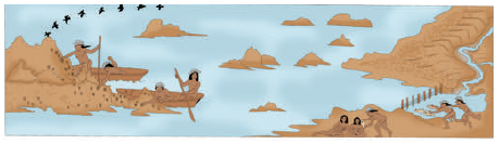 El Álbum de Figueroa es el documento que mejor reproduce una escena ambientada en la época colonial en la que los indígenas de Boruca extraían de las rocas el caracol de tinte. El dibujo que se presenta a continuación, muestra cuatro escenas: a la izquierda, 4 indígenas transportados en canoas se dedican a extraer el caracol de las rocas, mientras un grupo de pájaros sobrevuela la escena con el fin de comer caracoles. En una segunda figura, dos mujeres indígenas reciben las madejas de algodón por parte de un encargado nativo; estas después las empapan con agua salada -fijador natural- para teñirlas. Una última escena reproduce la idea de que los borucas aprovechaban sus viajes a la costa para recolectar otros recursos; en el caso de este dibujo: dos de ellos se dedicaban a hacer trampas para coger peces y probablemente tortugas (figura 3).
