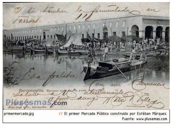 Así que este fue el origen, o al menos la circunstancia, consecuencia de los procesos de modernización de la ciudad incipiente, que permitió que el mercado de Barranquilla se localizara en ese emplazamiento. Este inmueble fue construido en 1882 por el creso barranquillero Esteban Márquez, pero es realmente la delimitación arquitectónica de una actividad que se llevaba a cabo en un espacio urbano vital, sin necesidad de edificación alguna. Este proyecto, por lo tanto, sería una de las infraestructuras públicas tempranas que se realizaron en la joven ciudad de Barranquilla, un proyecto de modernización de aquellos que resonaron debido a su tamaño, importancia e imponencia en comparación con la extensión de la ciudad hacia esa época (de algunos 10 mil habitantes para 1880), la calidad de las obras y el tipo de arquitectura novedosa que utilizaban.