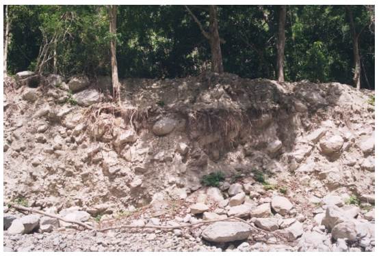 El depósito sucesivo de los sedimentos ha tenido lugar con cada evento a través del tiempo, lo que puede comprenderse en la estratigrafía característica de los depósitos aluviales. El aluvión, por otro lado, es un fenómeno de mecánica caótica, arrastrando lo que encuentra a su paso y arrojándolo sobre esas terrazas; por tanto, las terrazas enseñan, como se observa en el propio subsuelo de los depósitos aluviales, una estructura claramente estratigráfica, pero contundentemente enmarañada (imagen 9).